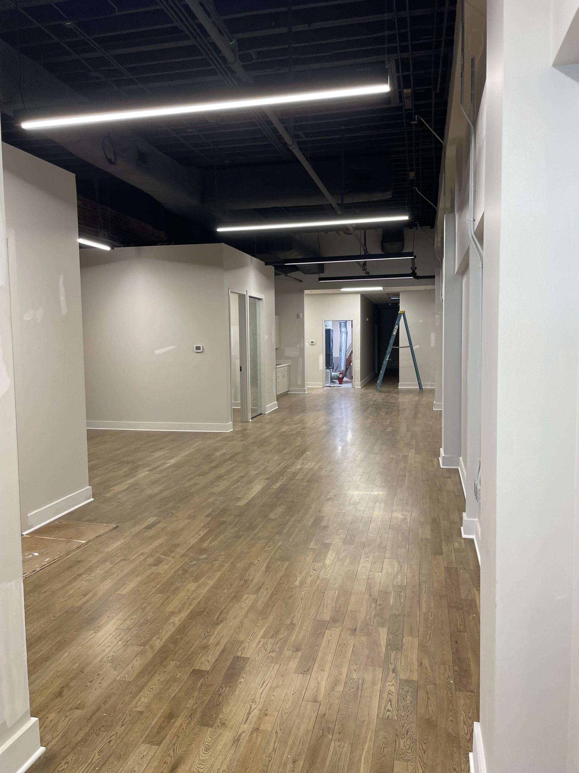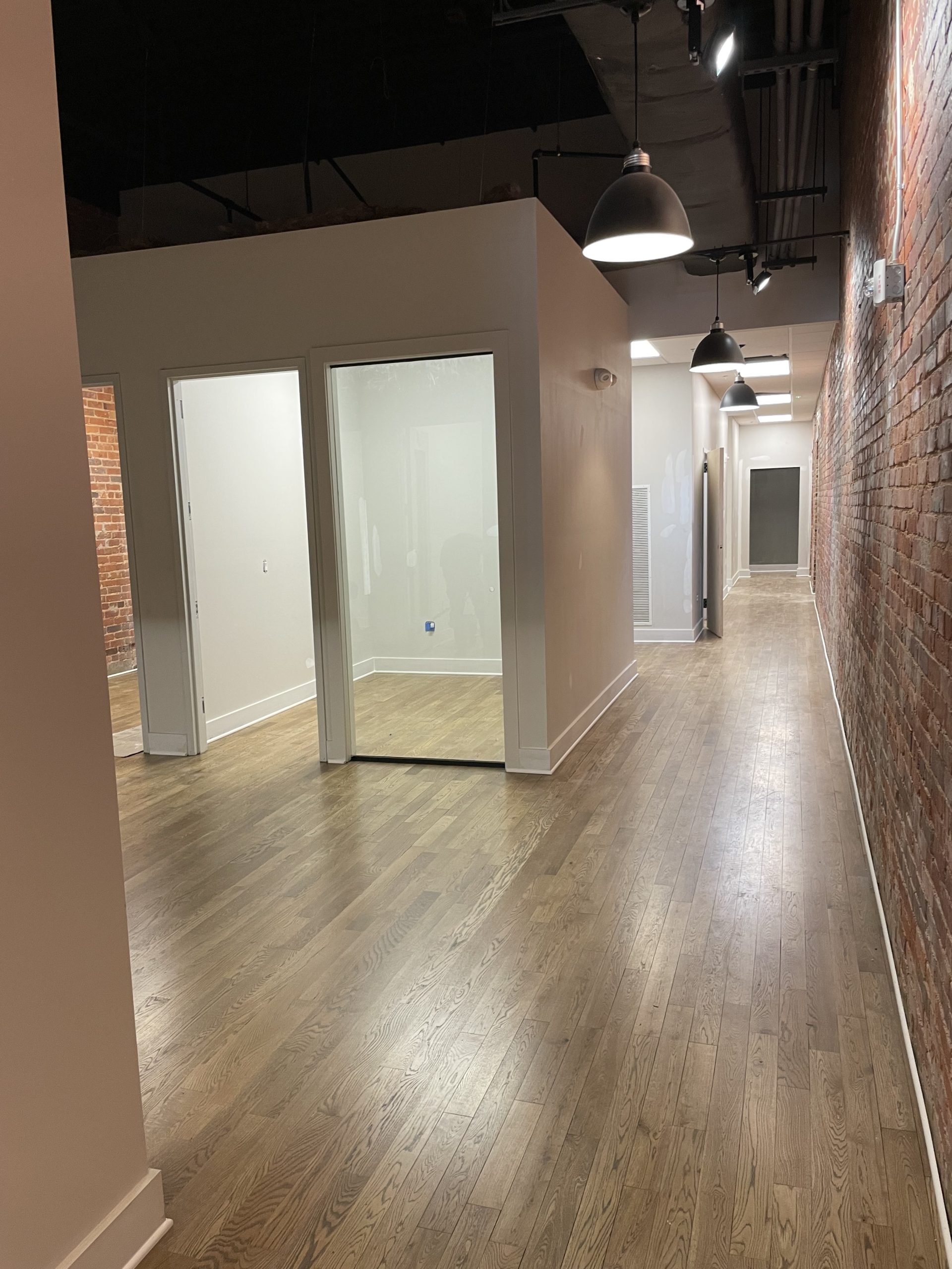 This project included new restrooms, restored hardware floors, revamped elevator, kitchens, offices, training rooms, and conference rooms, exposed brick walls, and many other high-end finishes.