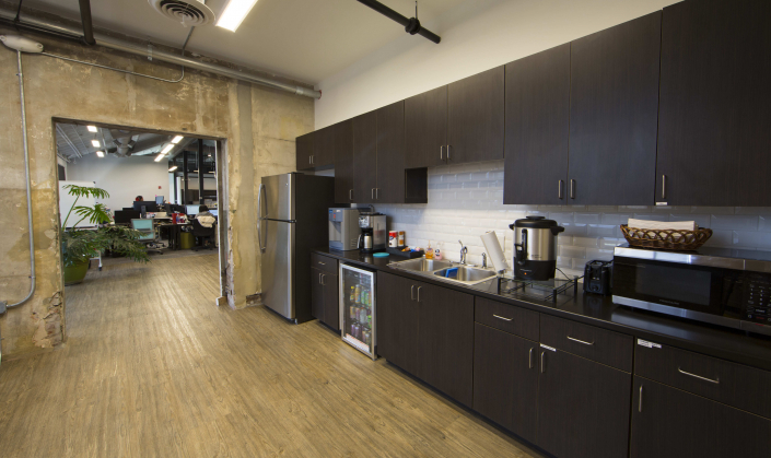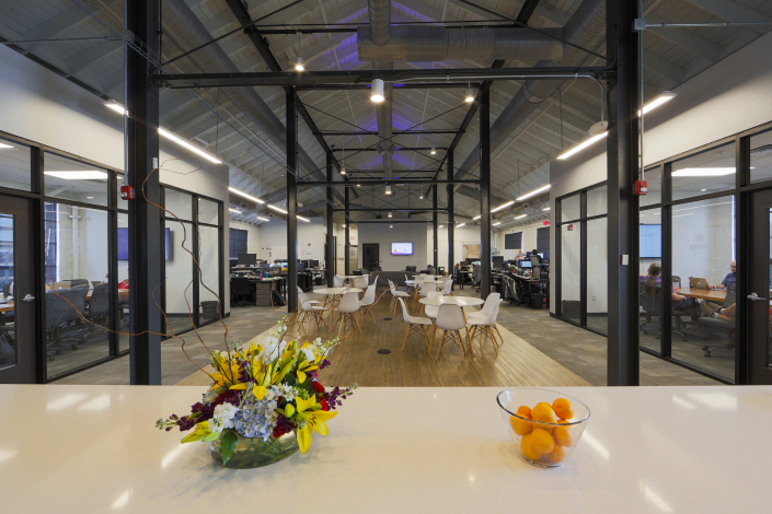 This project required the preservation of historic steel framing, windows, and interior masonry elements while providing updated office finishes and an efficient workspace layout.